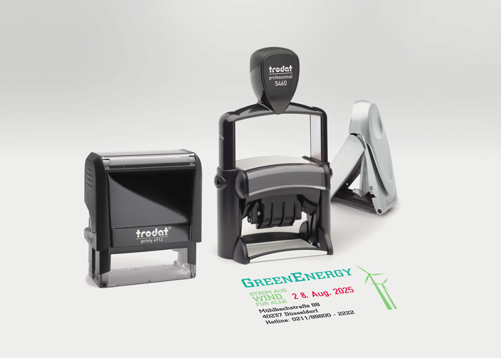 Ob klassischer Holzstempel oder moderner Selbstfärber – wir fertigen Stempel mit Ihrem Logo, Text oder Motiv nach Maß.